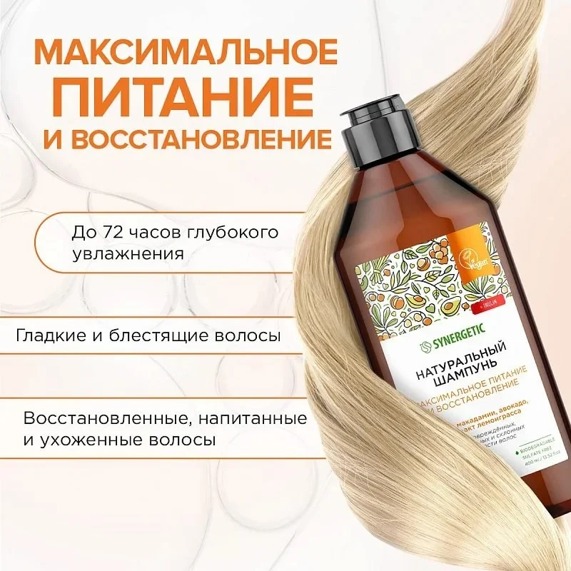 Шампунь Synergetic Максимальное питание и восстановление бессульфатный, 400мл
