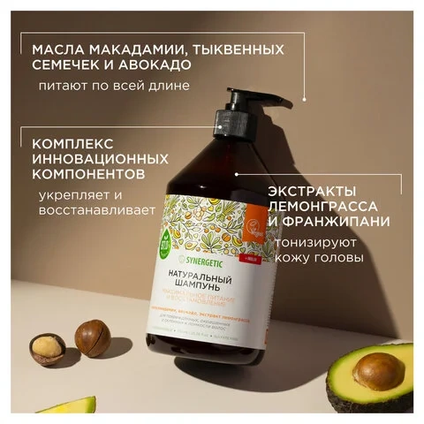 Шампунь Synergetic Максимальное питание и увлажнени 750мл, бессульфатный