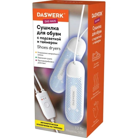 Сушилка для обуви электрическая с подсветкой и таймером, сушка для обуви, 12 Вт, DASWERK, SD8, 45620