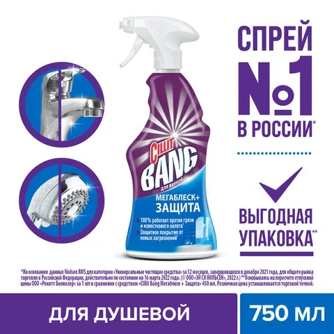 Отзывы о «Средство чистящее Cillit Bang 'Мегаблеск + Защита', спрей, с курком, 750мл»