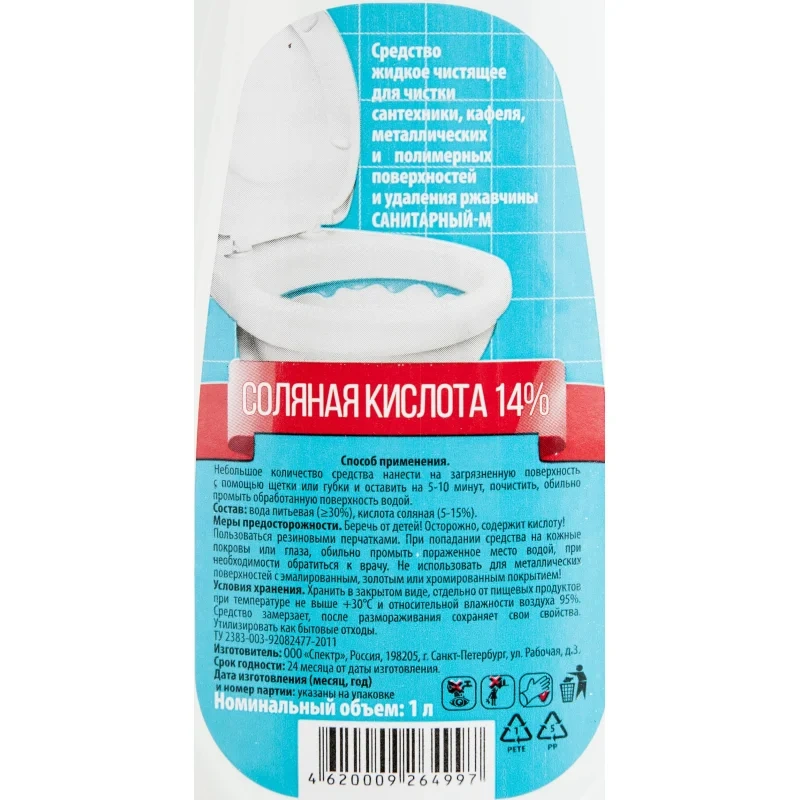 Средство для сантехники чистящее Санитарный М 0,75 л для уборки туалета/для чистки ванн и душевых