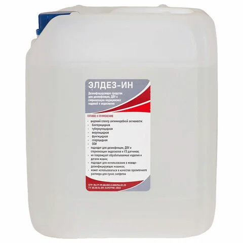 Средство дезинфицирующее для стерилизации и ДВУ 5 л, ЭЛДЕЗ-ИН, готовый раствор, ЭЛ-ИН-341