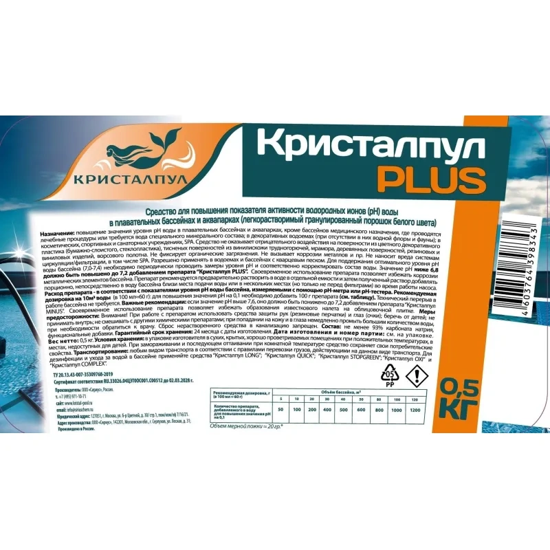 Средство для бассейна Кристалпул PLUS 500гр, для повышения уровня pH воды