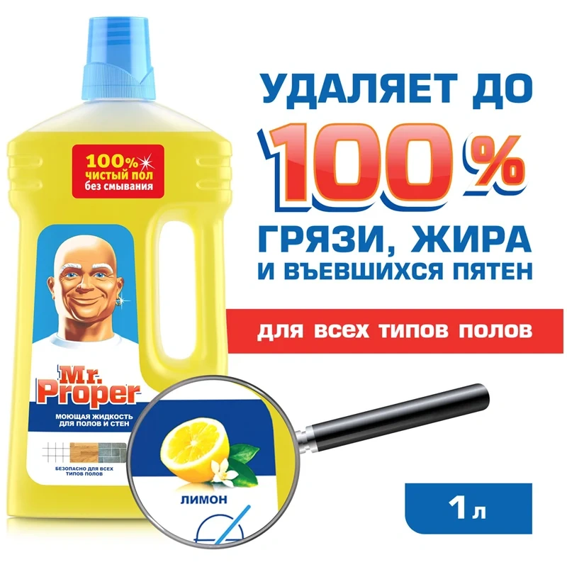 Средство для мытья пола и стен Mr Proper 1л, лимон, жидкость