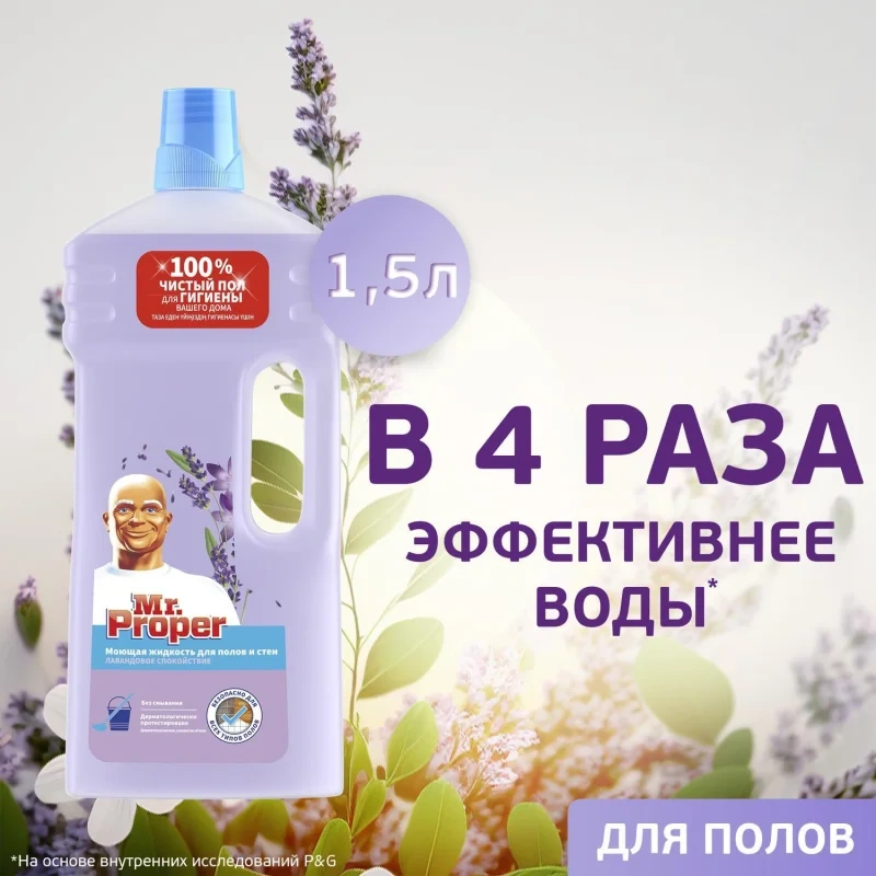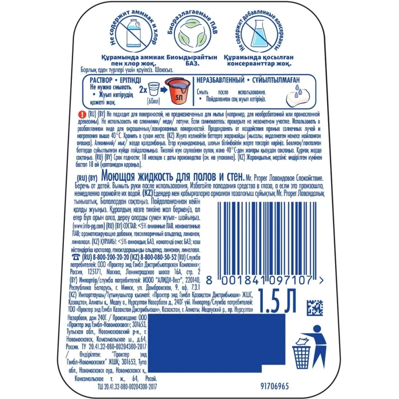 Средство для мытья пола и стен Mr. Proper Лавандовое Спокойствие 1,5 л универсальное