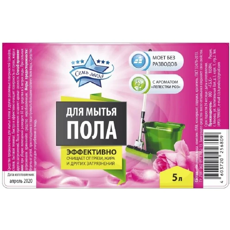 Средство для мытья пола Семь звёзд Лепестки роз 5 л универсальное