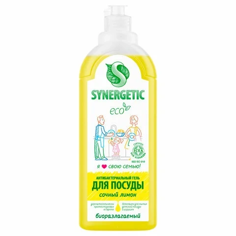 Концентрированный антибактериальный гель для посуды Synergetic — это экологичное, безопасное и эффективное средство для мытья посуды, фруктов и овощей. Гель полностью смывается водой и подходит для мытья детской посуды, бутылочек и игрушек. Устраняет жир и запахи с посуды даже в холодной воде. Мягкие биоразлагаемые тензиды, полученные из растительного масла, удаляют органические загрязнения с посуды и обеспечивают хорошее пенообразование, не вызывая раздражения кожи рук.