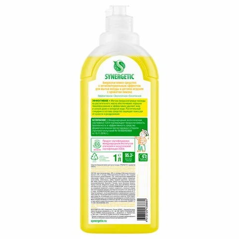 Средство для мытья посуды Synergetic Антибактериальное гипоаллергенное с ароматом лимона, 1л