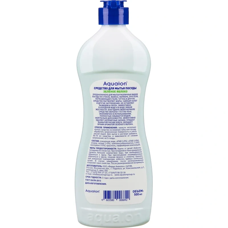 Средство для мытья посуды Aqualon 500мл, зеленое яблоко
