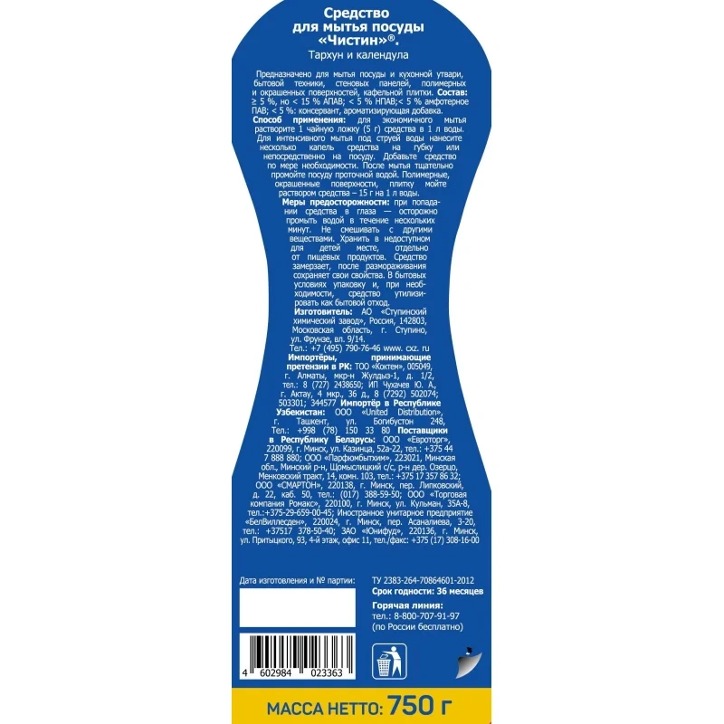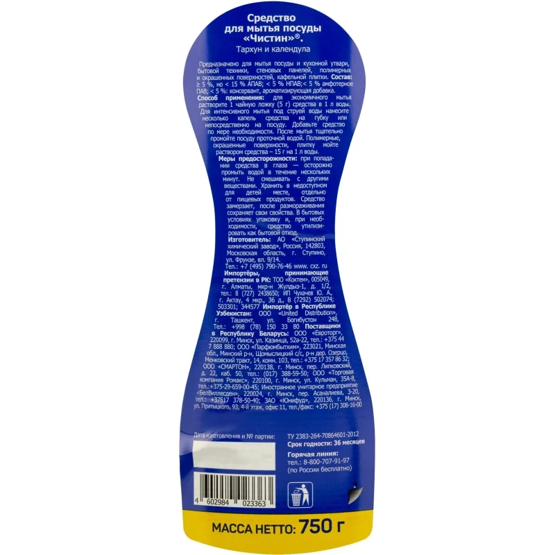 Средство для мытья посуды Чистин Тархун и календула жидкость 0.75 л