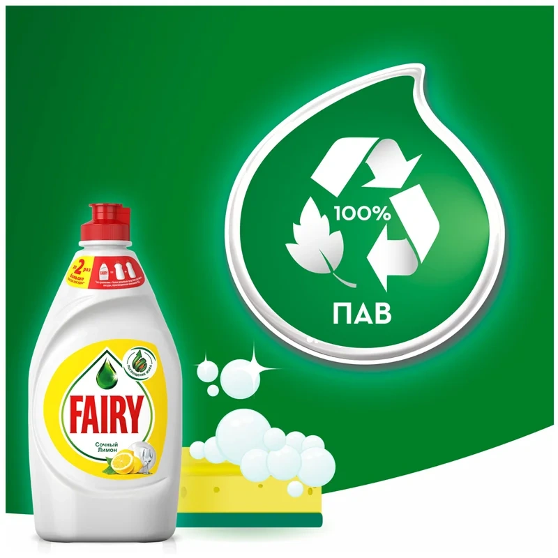 4. ЭКОНОМИЧНЫЙ РАСХОД. За счет стойкой густой пены, одна капля Fairy отмоет в 2 раза больше посуды, чем более бюджетные средства из ассортимента P&G;