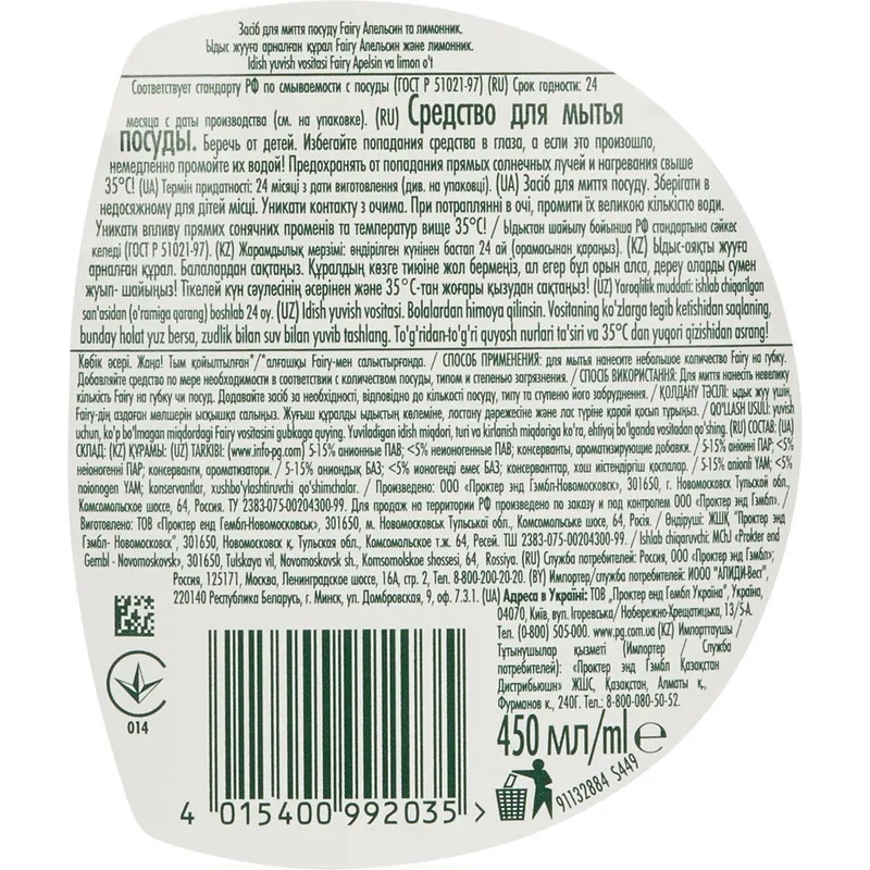Средство для мытья посуды Fairy 450мл, сочный лимон, гель