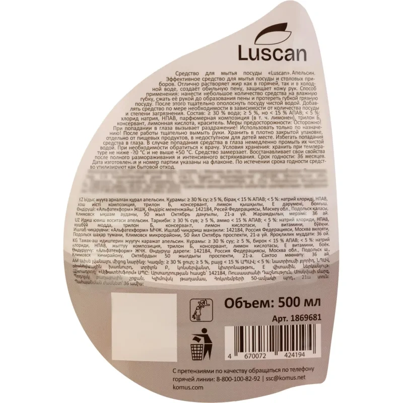 Средство для мытья посуды Luscan Бальзам-апельсин гель 0.5 л