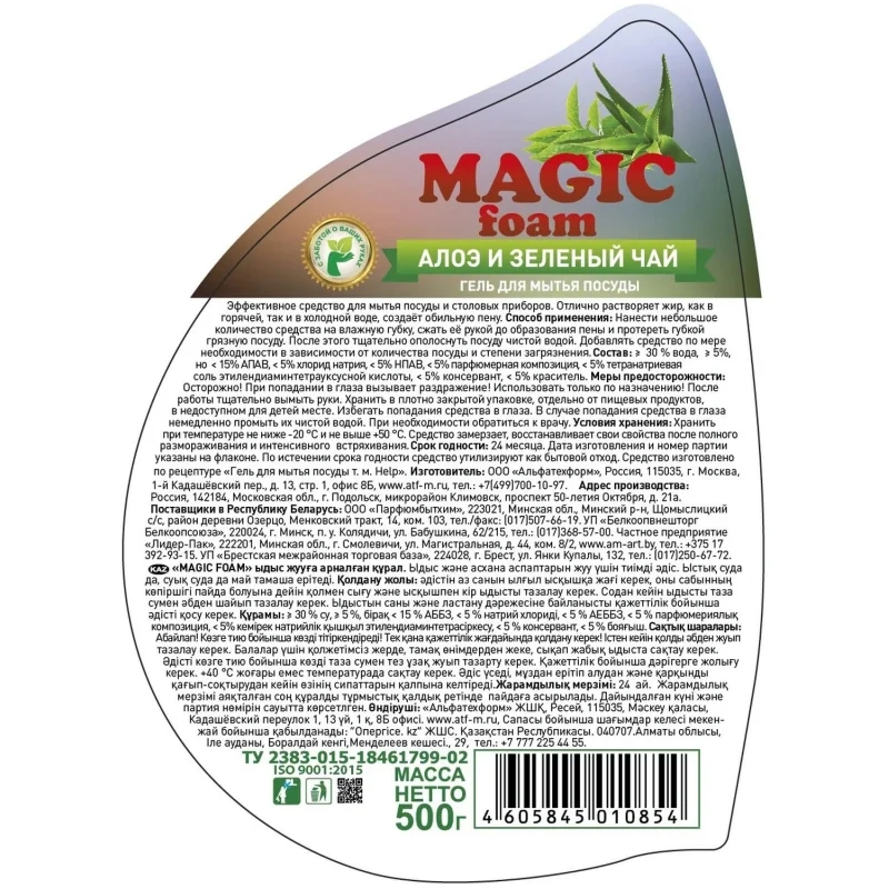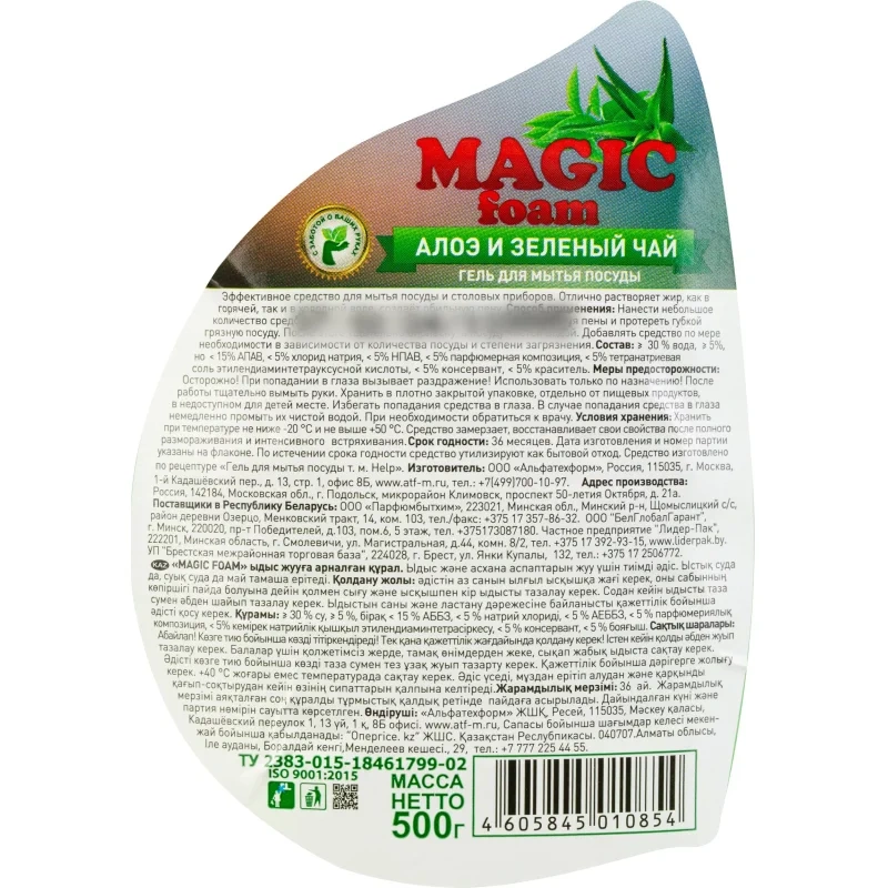 Средство для мытья посуды Magic foam Алоэ и зелёный чай гель 0.5 л