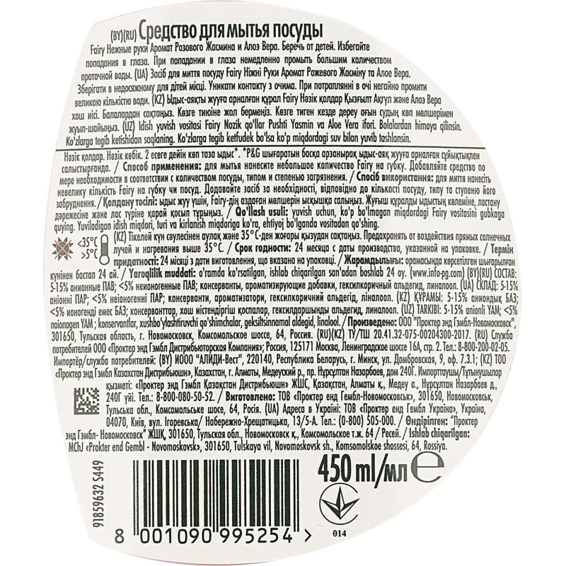 Объем 500 мл. Жидкость для мытья посуды среднего ценового сегмента. С натуральными экстрактами фруктов и цветов. Используется также в качестве синтетического моющего средства в уборке помещений. Химический состав:5-15% анионные ПАВ; <5% неионогенные ПАВ; ароматизирующие добавки, консерванты