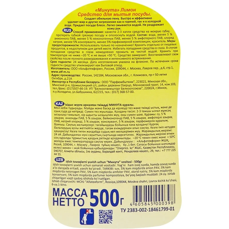 Средство для мытья посуды Минута Лимон жидкость 0.5 л