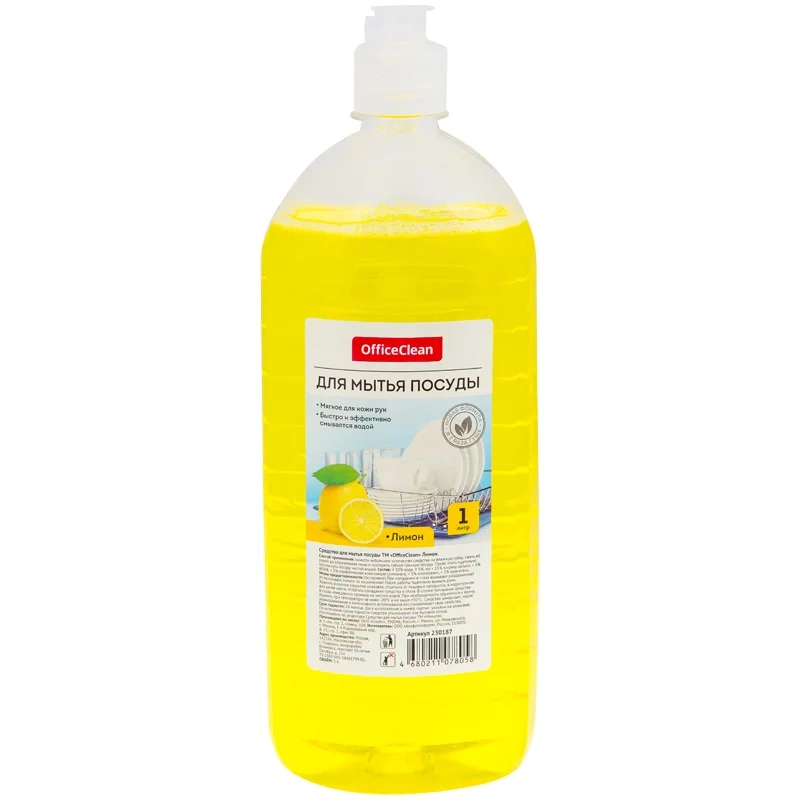 Экономичная жидкость для мытья посуды, создает обильную пену, отлично отмывает жир и другие загрязнения. Способ применения: растворить одну чайную ложку средства в 5 л воды, или небольшое количество средства нанести на губку, и помыть посуду. Вымытую посуду ополоснуть водой. Предназначено: для мытья посуды на предприятиях общественного питания и в быту. Пригодно для мытья изделий из всех видов водостойких материалов. Эффективно в холодной воде. Состав: ? 30 % вода, ? 5 %, но < 15 % хлорид натрия, < 5 % АПАВ, < 5 % парфюмерная композиция, < 5 % консервант, < 5 % краситель.