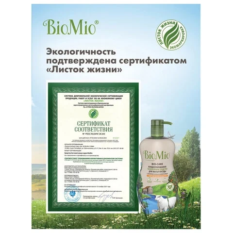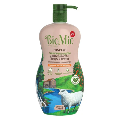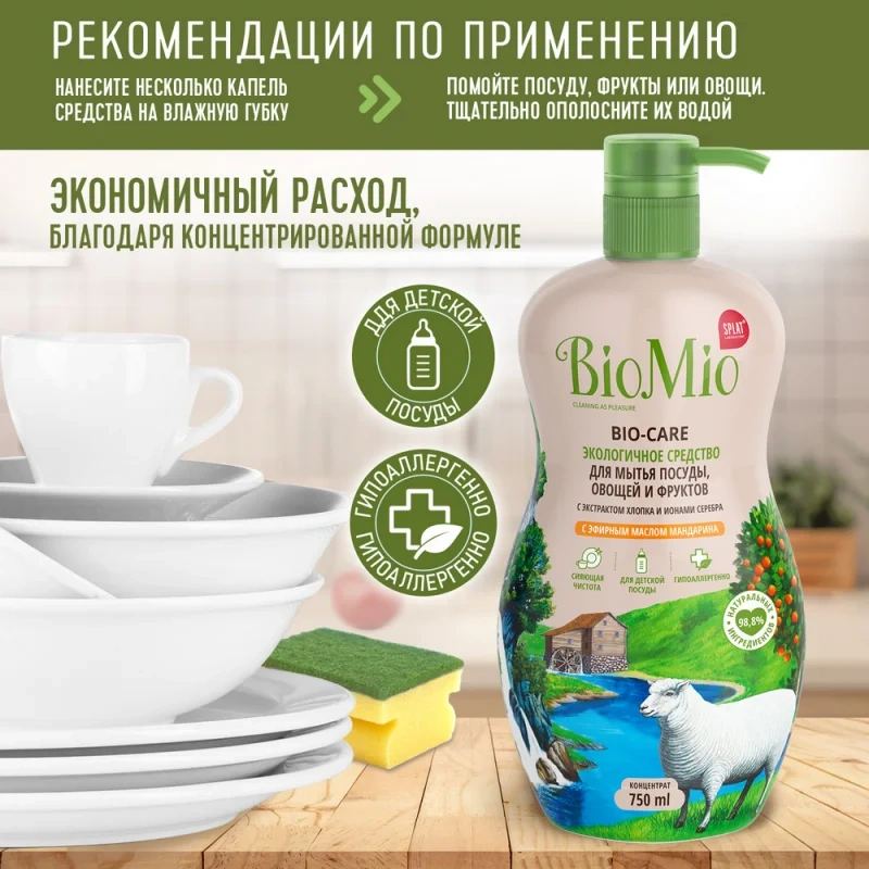 Средство экологичное BioMio для мытья посуды, овощей и фруктов с эфирным маслом мандарина, экстракто