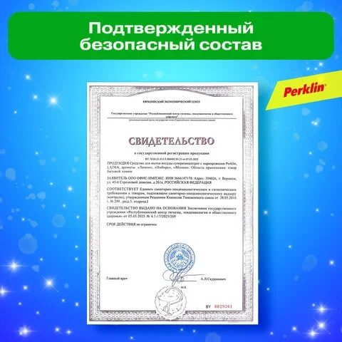 Средство для мытья посуды, овощей и фруктов с дозатором концентрат 1,5 л, PERKLIN (ПЕРКЛИН) 'Лимон',
