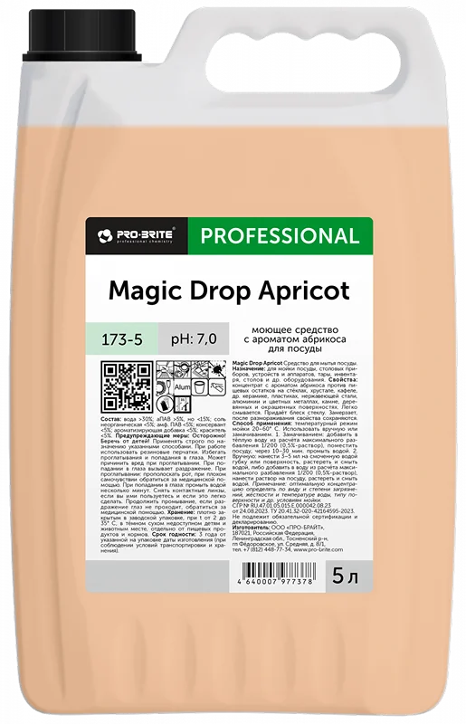 Средство для мытья посуды Pro-Brite Magic Drop 5л, 173-5, с ароматом абрикоса