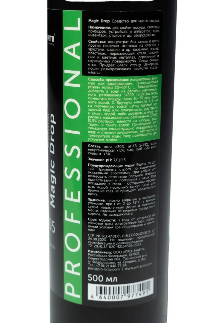 Средство для мытья посуды Pro-Brite Magic Drop 500мл, 176-05, без запаха