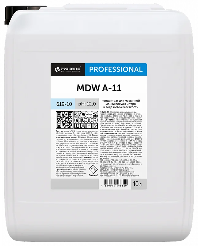 Средство для мытья посуды Pro-Brite MDW A-11 10л, 619-10