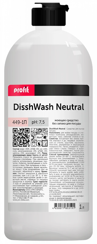 Средство для мытья посуды Profit DishWash 1л, 449-1П, нейтральное