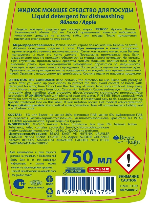 Жидкое моющее средство предназначено для ручного мытья посуды и кухонного оборудования. Средство хорошо пенится, полностью смывается с поверхности и устраняет нежелательные запахи. Готово к применению.