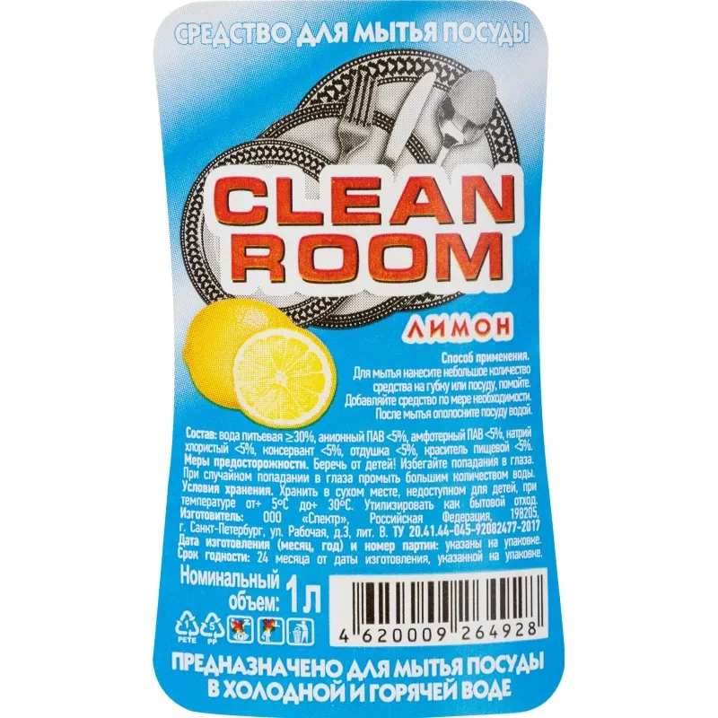 Средство для мытья посуды Clean Room Лимон жидкость 1 л с дозатором