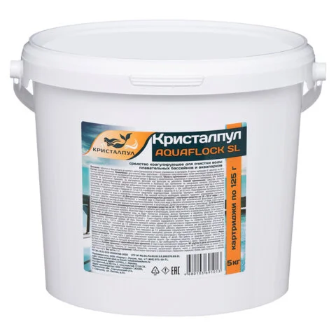 Средство для осветления воды в бассейнах, 5 кг, КРИСТАЛПУЛ AQUAFLOCK SL, таблетки по 25 г, KPAQSL5