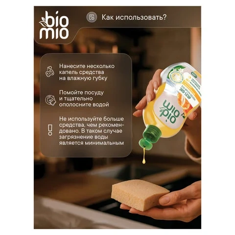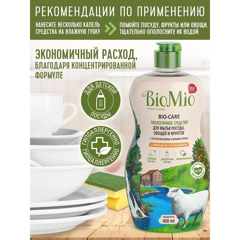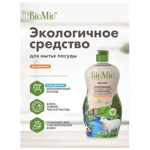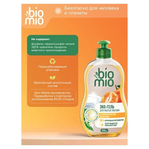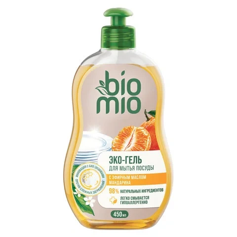 Средство для посуды и детских принадлежностей Bio Mio Эко 450мл, эфирное масло мандарина/ экстракт хлопка, концентрат