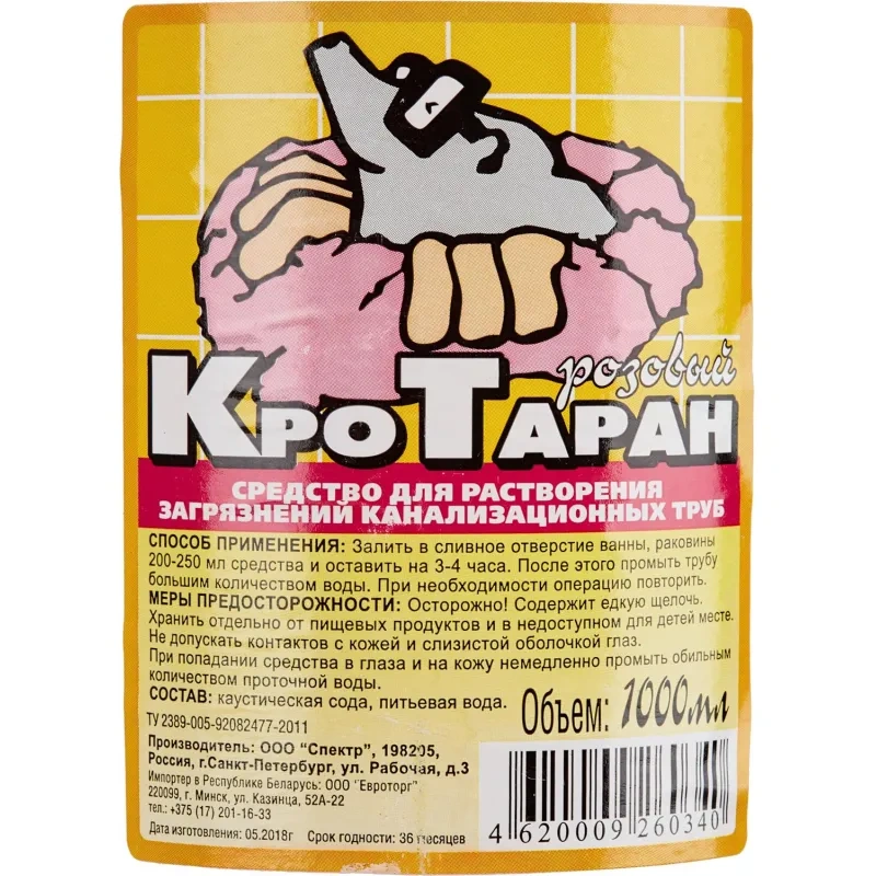 Средство для прочистки труб Розовый КроТаран жидкость 1 л.