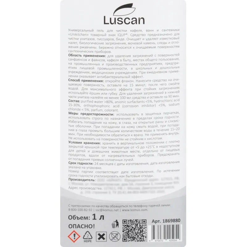 Средство для сантехники Luscan гель с кислотой 1 л