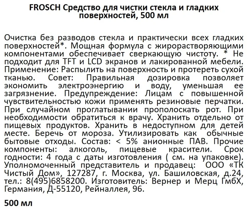 | Не содержит | аммиак; нефтепродукты; парабены; хлор; кислоты |