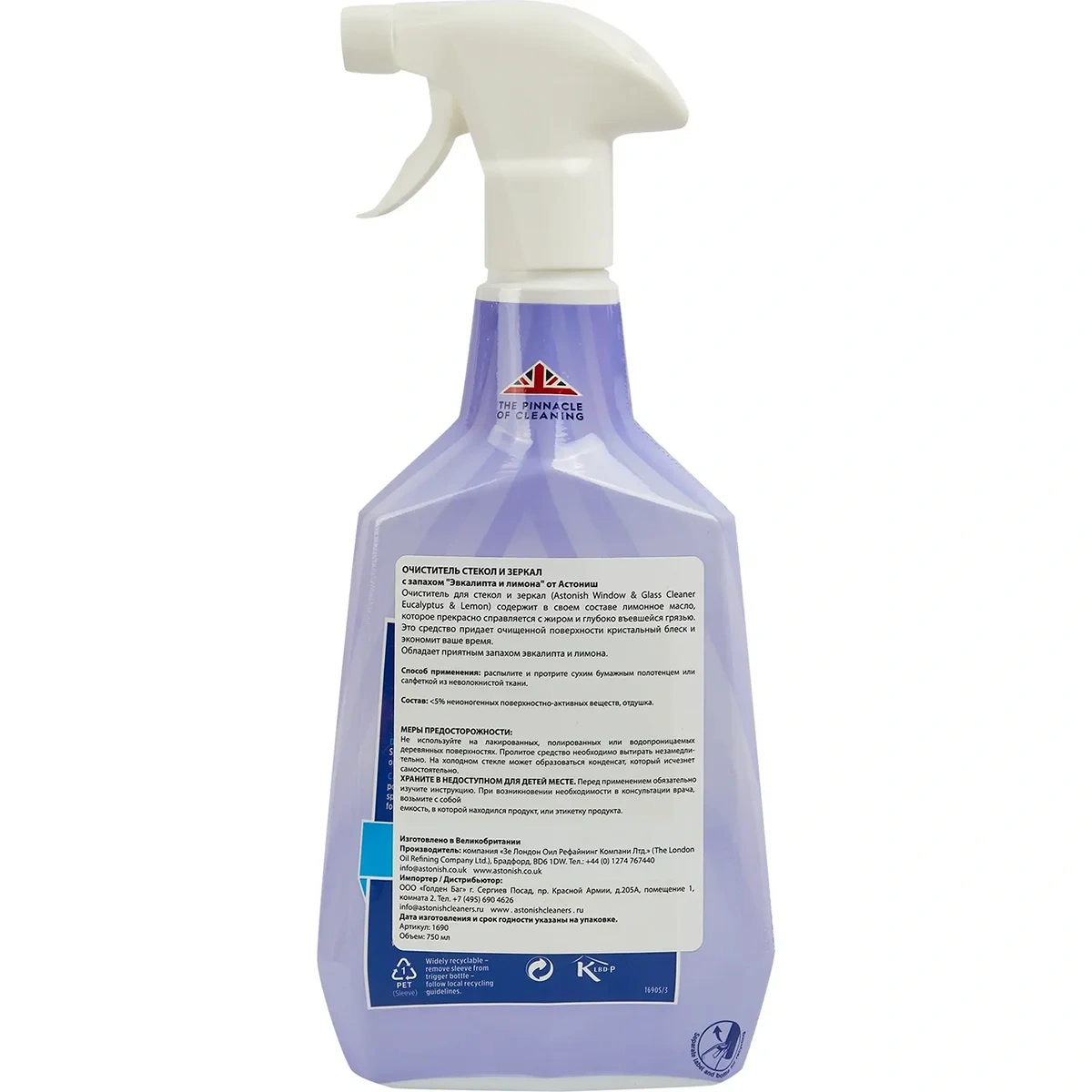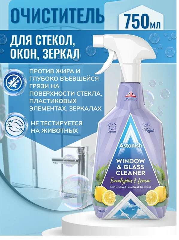 Очиститель для стекол, окон и зеркал Window & Glass Cleaner содержит в своем составе лимонное масло, которое прекрасно справляется с жиром и глубоко въевшейся грязью на поверхности стекла, пластиковых элементах и зеркалах. Средство придает очищенной поверхности кристальный блеск и экономит ваше время. Обладает приятным запахом эвкалипта и лимона. Используется для очистки поверхностей. Не рекомендуется применять его на деревянных, лакированных и полированных деталях. При проливании жидкость следует сразу вытереть насухо. Содержит лимонное масло, эффективно устраняющее жир. Подходит для веганов. Безопасен для септиков.