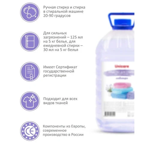 Средство для стирки жидкое автомат для цветного белья 5 л UNICARE, ПЭТ, UC201013
