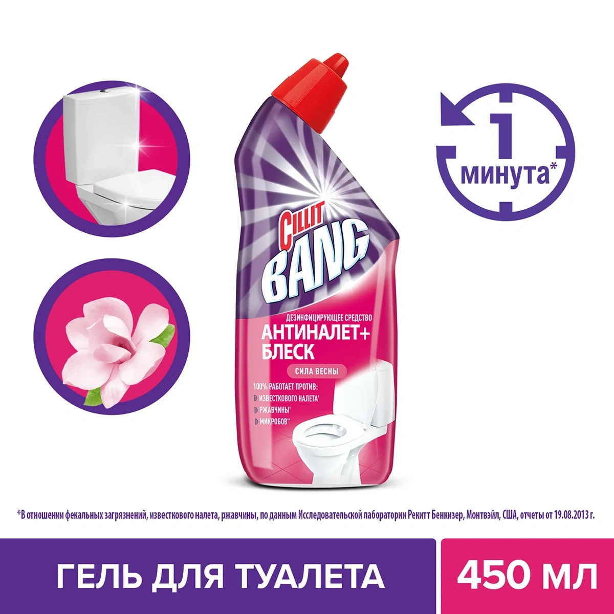 Средство для туалета Cillit Bang Антиналет+Блеск Сила весны, 450мл