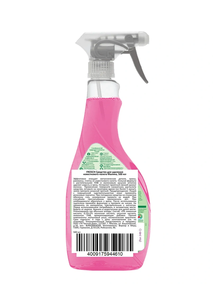 Средство для удаления известкового налета Frosch с малиной, 500мл