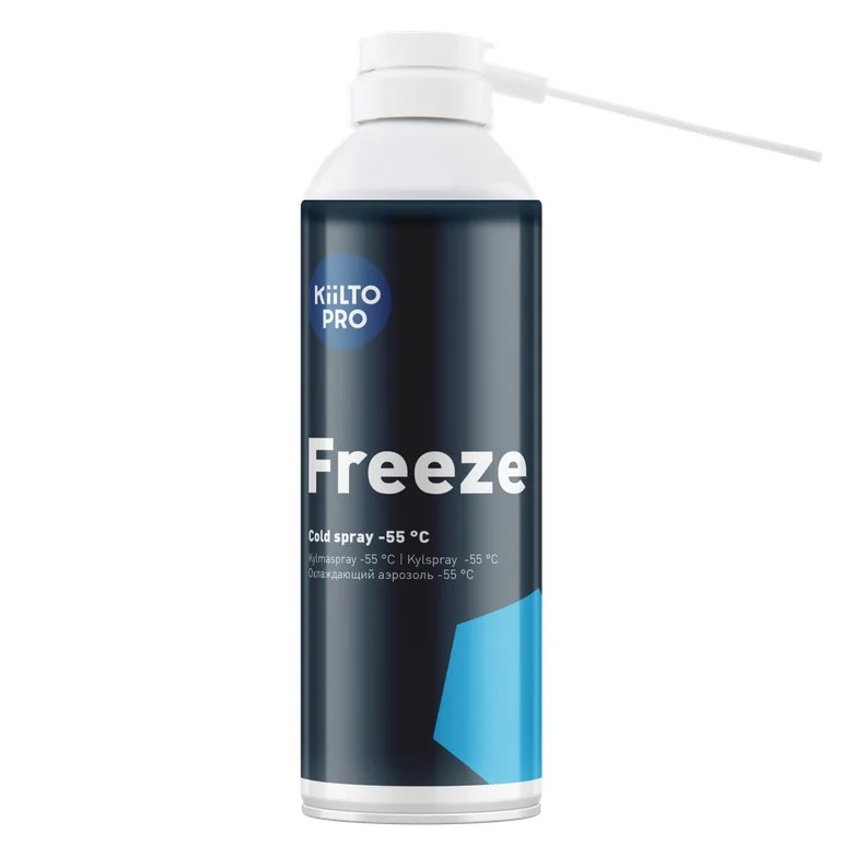 Для быстрого местного замораживания. Позволяет быстро и легко локализовать неисправную в термическом отношении деталь, термопереключатель, реле, термостат, холодный спай и т.п. Облегчает монтаж и демонтаж подшипников, хороший вспомогательный инструмент, например, в мастерских по ремонту автомобилей при выполнении монтажных работ. Можно также использовать для отделения жевательной резинки с ткани. В перевернутом положении работает и как очиститель под давлением.