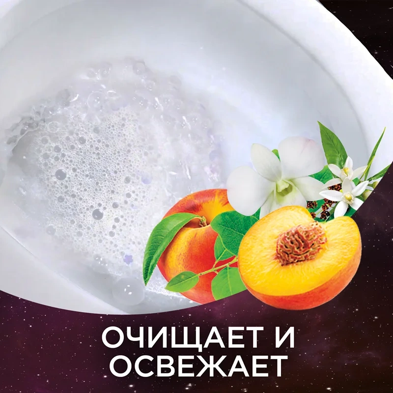 Встречайте новую коллекцию ароматов от Туалетного Утенка! Туалетный Утенок Чистящее средство для унитазов Cosmic Peach обеспечивает бескомпромиссную чистоту и свежесть унитаза, эффективно удаляет известковый налет и грязь, без хлора в составе. Гель обладает нежным фруктовым ароматом. Уникальная форма горлышка позволяет гелю лучше попадать в труднодоступные места скопления бактерий под ободком унитаза. Обладает дезинфицирующим эффектом - убивает 99,99% вирусов и бактерий. Устраняет неприятные запахи. Гель экономично расходуется, равномерно распределяется по поверхности и действует даже под водой. Чистящее средство Туалетный Утенок необходимо применять только для очищения унитаза. Попробуйте также Стикеры Чистоты от Туалетного Утенка для поддержания чистоты и свежести в туалете.