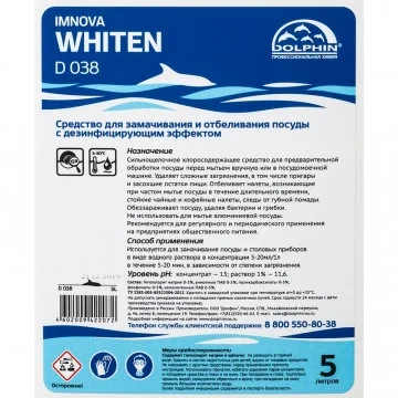 Средство для замачивания и отбеливания посуды Dolphin Imnova Whiten D038 5 л с дезинфицирующим эффектом