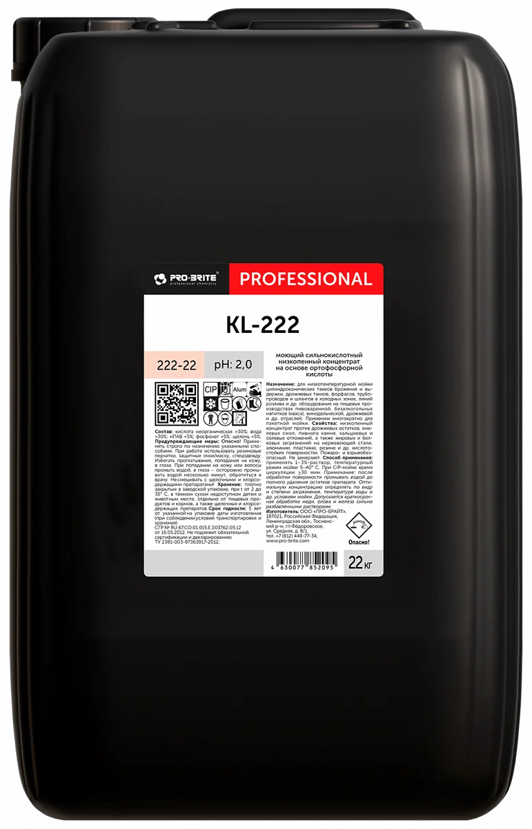 Средство кислотное моющее и чистящее KL-222. 22 кг
