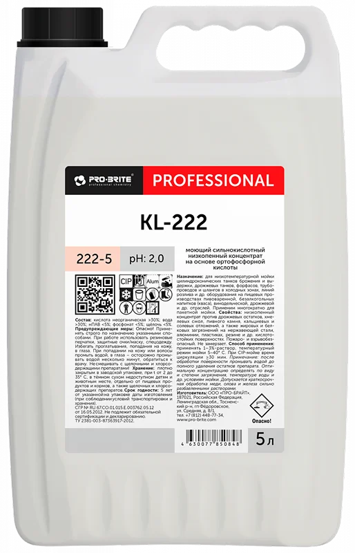 Средство кислотное моющее и чистящее KL-222. 5 л