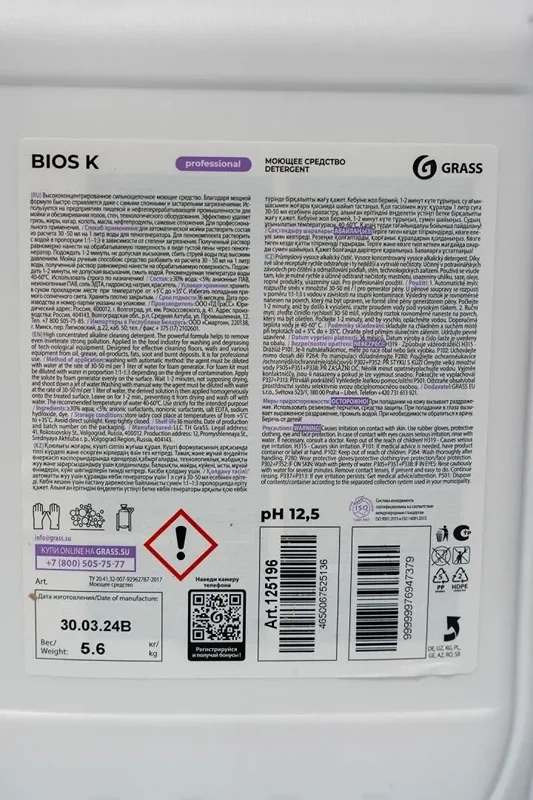 Универсальный моющий концентрат Grass BIOS K для промышленного оборудования, 5.6кг, 125196
