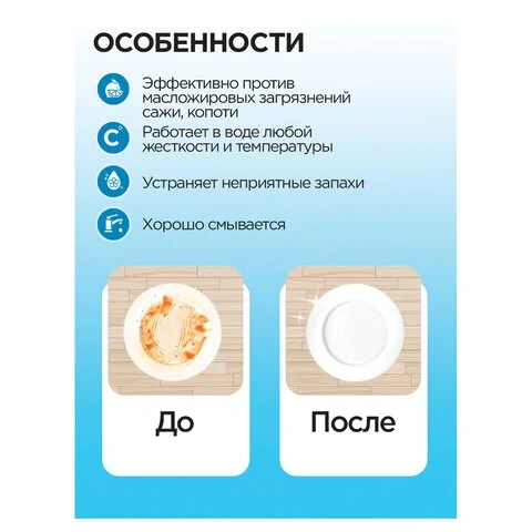Уникальная формула нашего моющего средства проникает в загрязнения, быстро и легко разрушая жир, остатки пищи и другие трудновыводимые пятна. Даже самые стойкие загрязнения не смогут устоять перед мощью нашего продукта!