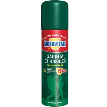 Аэрозоль от клещей Mosquitall 'Защита для взрослых' обеспечивает высокую степень защиты от лесных и таежных клещей и обладает двойным действием: уничтожает клещей и надежно отпугивает комаров и других кровососущих насекомых.