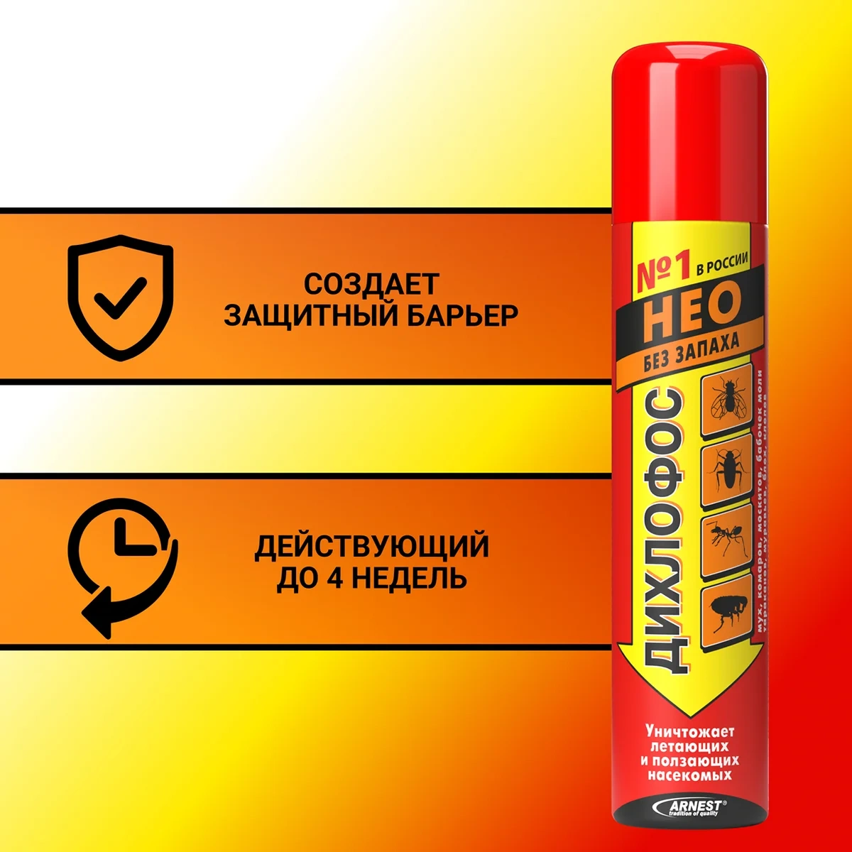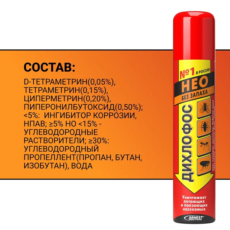 Избавьтесь от надоедливых насекомых раз и навсегда с профессиональным средством Дихлофос Нео! Это мощное средство, разработанное для быстрого и надежного уничтожения тараканов, мух, постельных клопов, муравьев, блох, комаров, ос, мошек и других насекомых, которые могут доставлять дискомфорт в вашем доме или квартире.