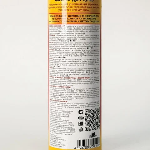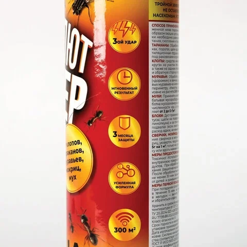 В качестве действующих веществ средство содержит компоненты из трех различных химических классов, что обеспечивает хорошую гибель насекомых, даже на объектах с резистентными особями.
