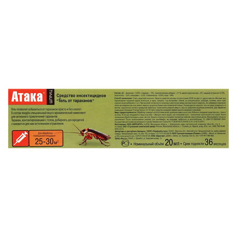 Средство инсектицидное Атака От тараканов гель 20 мл.