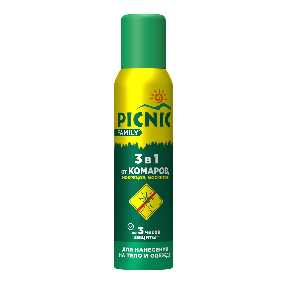 Репеллент Пикник Family в формате аэрозоля предназначен для защиты взрослых и детей от 5 лет от укусов комаров, мошек, москитов, слепней, блох и мокрецов. Средство от комаров можно наносить на кожу, на одежду, на палатку, на снаряжение, на занавески, на москитную сетку, на антимоскитные занавески на дверях, на обувь и на другие предметы, которые необходимо обработать. При нанесении на кожу спрей от комаров держится до 3 часов, при нанесении на одежду - до 5 суток. На одежду спрей от комаров следует наносить с осторожностью, в особенности на синтетические ткани и пластиковые элементы. На кожу наносить средство взрослому человеку можно не более 4 раз в сутки, ребенку - не более 2-3 раз.